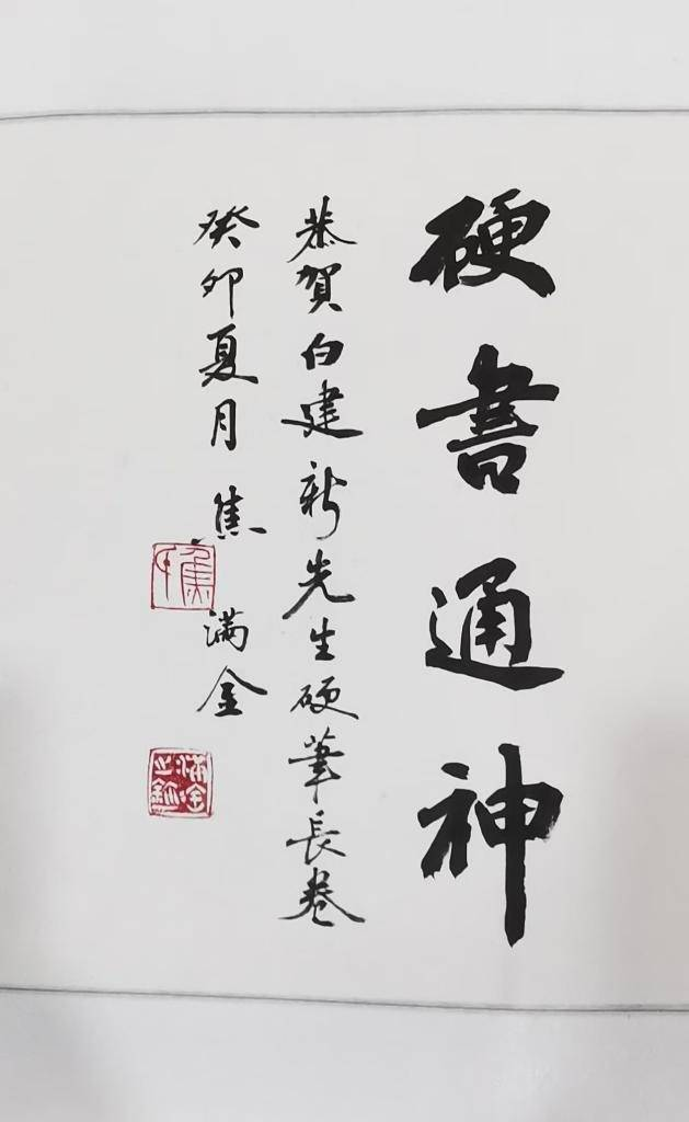 凯发k8省硬笔书法家协会主席焦满金先生为该长卷题词:硬书通神