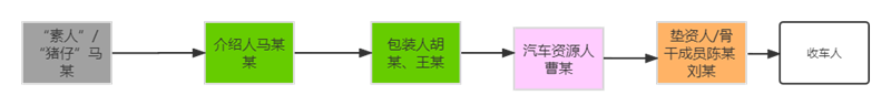 1. “素人”马某:有资金需求但无购车能力及还款能力的购车人,内部称“小猪仔”或“素人”;