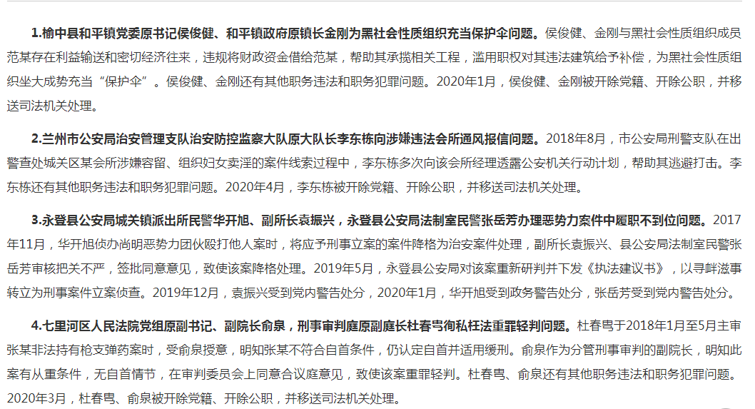 兰州市纪委监委通报4起扫黑除恶专项斗争“惩腐打伞”典型问题